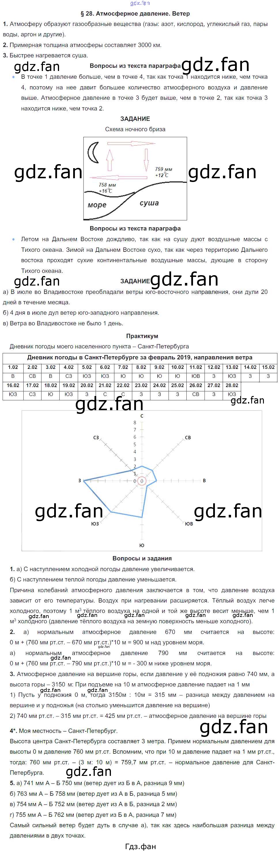 Проверка домашнего задания всегда занимает большое количество времени. На помощь приходит ГДЗ фан по Географии шестого класса. Здесь собраны популярные ответы на §28. Атмосферное давление. Ветер География. Начальный курс 6 класс Герасимова Т.В.