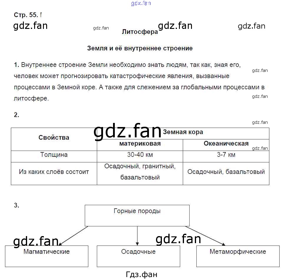 Проверка домашнего задания всегда занимает большое количество времени. На помощь приходит ГДЗ фан по Географии шестого класса. Здесь собраны популярные ответы на 55 (Земля и её внутреннее строение № 1, 2, 3) География 6 класс рабочая тетрадь Карташева Т.А. (к уч. Герасимовой)