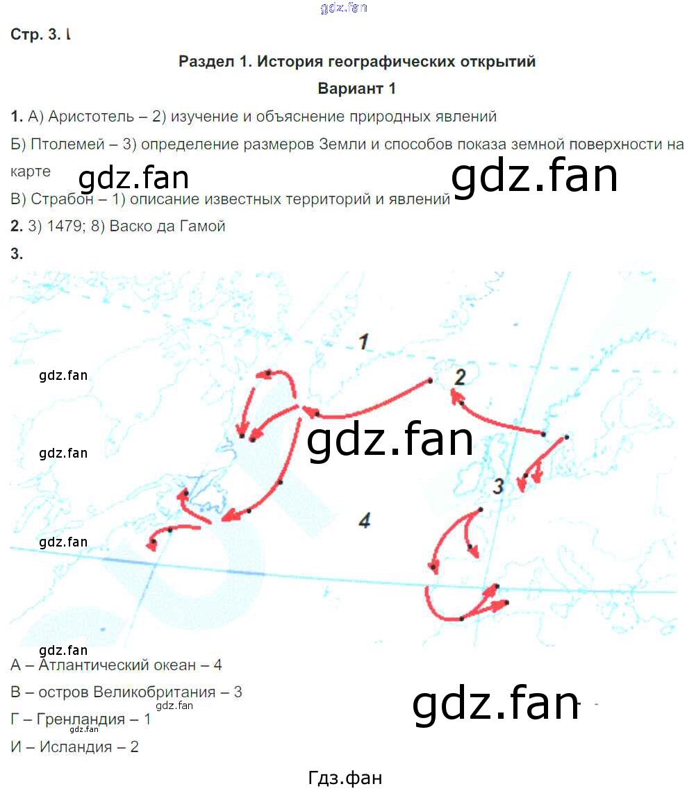 Проверка домашнего задания всегда занимает большое количество времени. На помощь приходит ГДЗ фан по Географии шестого класса. Здесь собраны популярные ответы на 3 (История географических открытий Вариант 1 № 1, 2, 3) География 6 класс Тетрадь для контрольных и проверочных работ Летягин А.А.