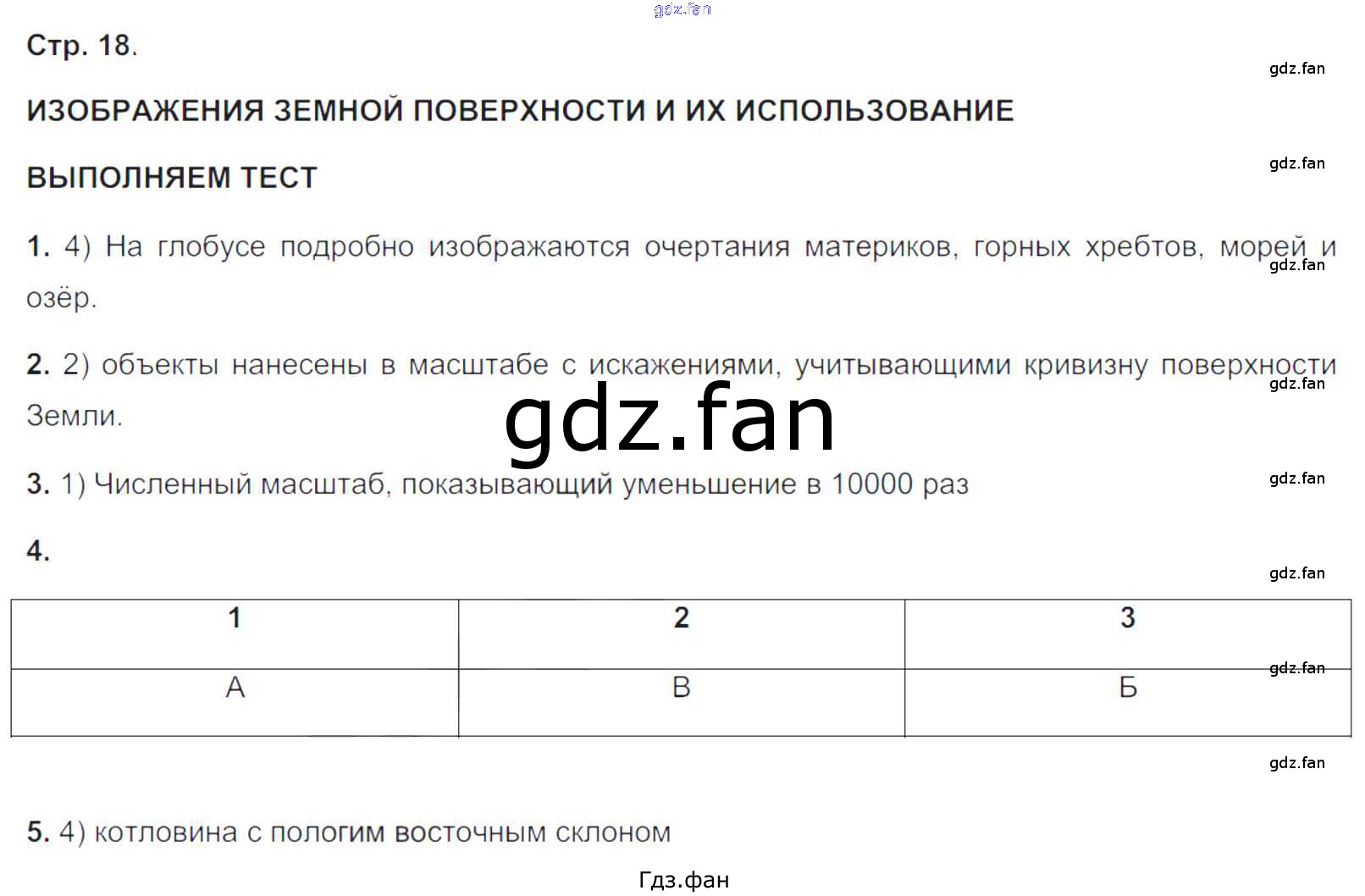 Проверка домашнего задания всегда занимает большое количество времени. На помощь приходит ГДЗ фан по Географии пятого класса. Здесь собраны популярные ответы на 18 (Изображения земной поверхности и их использование. Выполняем тест № 1, 2, 3, 4, 5) География 5-6 класс тетрадь-тренажёр Лобжанидзе А.А.