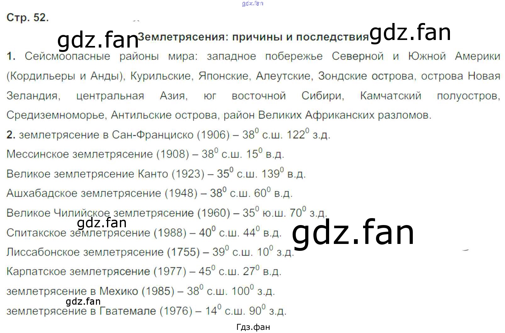 Проверка домашнего задания всегда занимает большое количество времени. На помощь приходит ГДЗ фан по Географии шестого класса. Здесь собраны популярные ответы на 52 (Землетрясения: причины и последствия № 1, 2) География 6 класс рабочая тетрадь Румянцев А.В. (к уч. Климановой)
