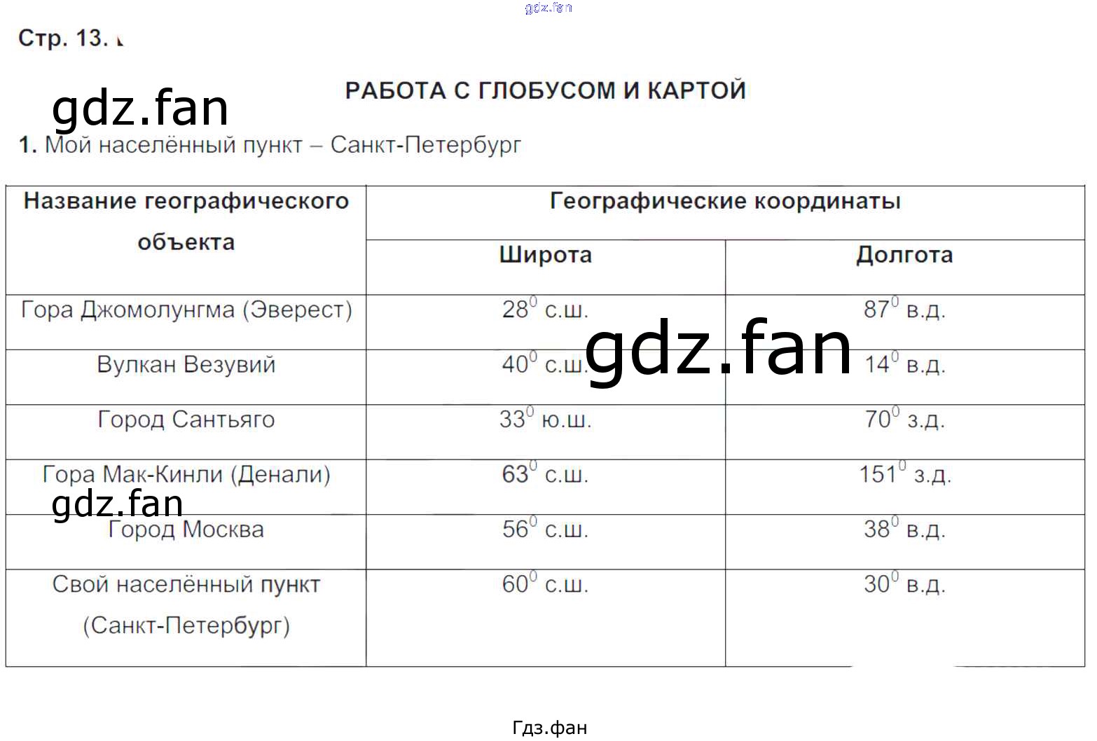 Проверка домашнего задания всегда занимает большое количество времени. На помощь приходит ГДЗ фан по Географии пятого класса. Здесь собраны популярные ответы на 13 (работа с глобусом и картой) География 5-6 классы рабочая тетрадь Сиротин В.И.