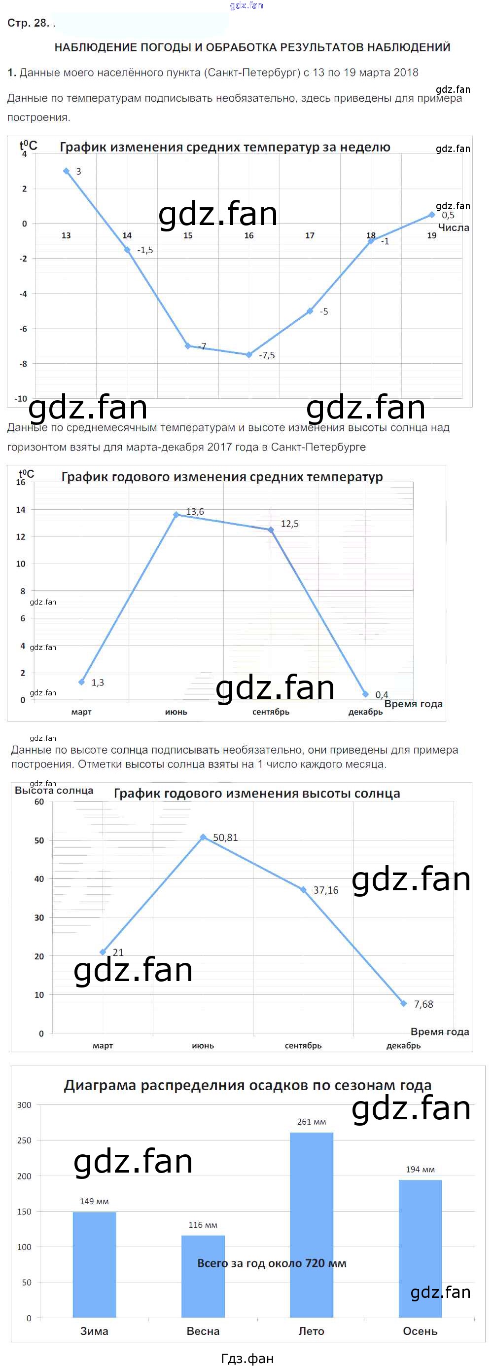 Проверка домашнего задания всегда занимает большое количество времени. На помощь приходит ГДЗ фан по Географии пятого класса. Здесь собраны популярные ответы на 28-32 (наблюдение погоды и обработка результатов наблюдения) География 5-6 классы рабочая тетрадь Сиротин В.И.