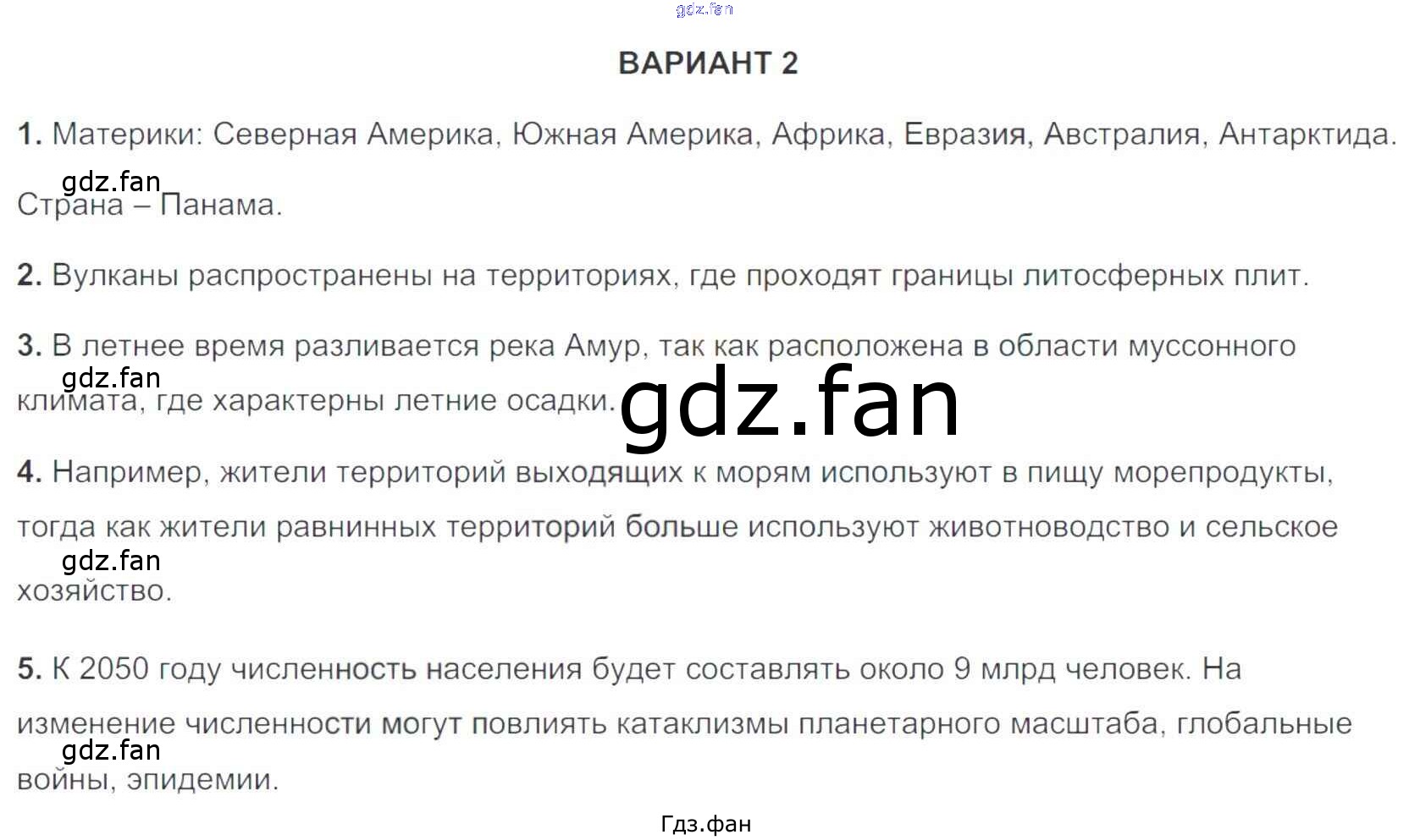 Проверка домашнего задания всегда занимает большое количество времени. На помощь приходит ГДЗ фан по Географии седьмого класса. Здесь собраны популярные ответы на 88 (Вариант 2 № 1, 2, 3, 4, 5) География 7 класс тетрадь-экзаменатор Барабанов В.В.
