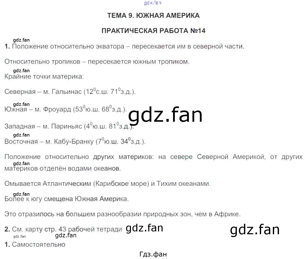Проверка домашнего задания всегда занимает большое количество времени. На помощь приходит ГДЗ фан по Географии седьмого класса. Здесь собраны популярные ответы на 42 (Тема 9. Южная Америка. ПР-14 № 1, 2) География 7 класс рабочая тетрадь с комплектом контурных карт Баринова И.И.