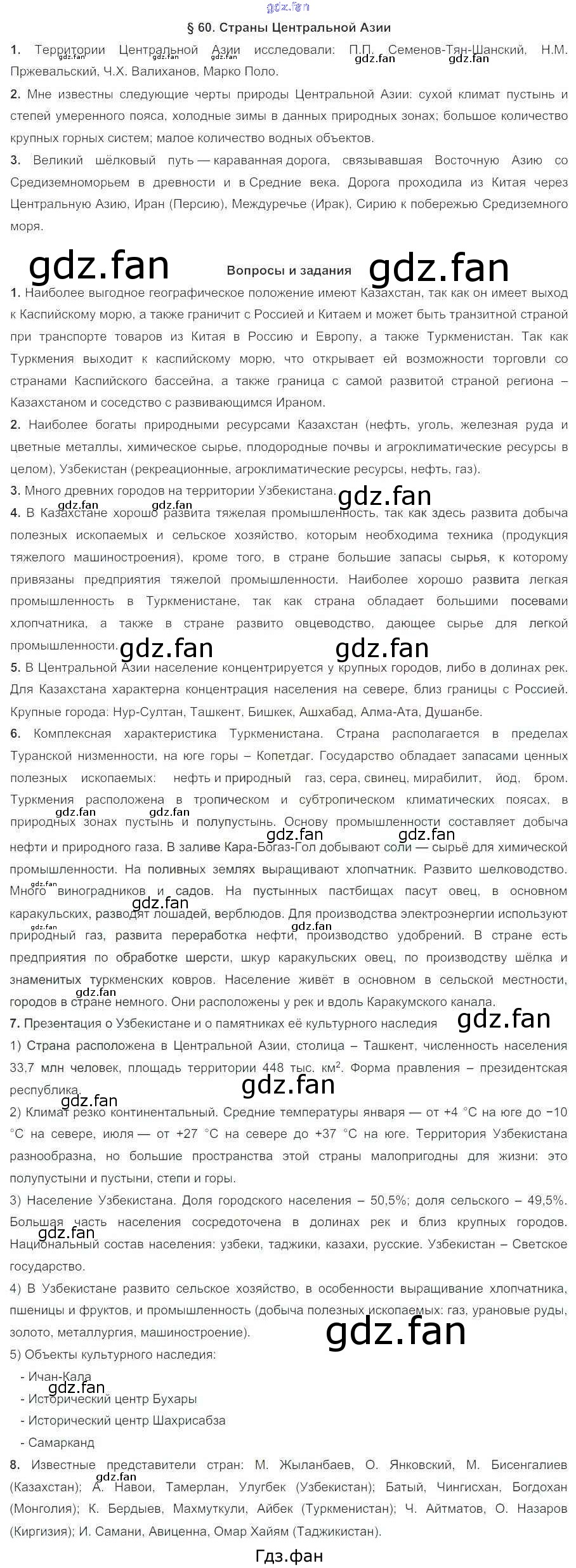 Проверка домашнего задания всегда занимает большое количество времени. На помощь приходит ГДЗ фан по Географии седьмого класса. Здесь собраны популярные ответы на §60 (стр. 301-306) География 7 класс Коринская В.А.
