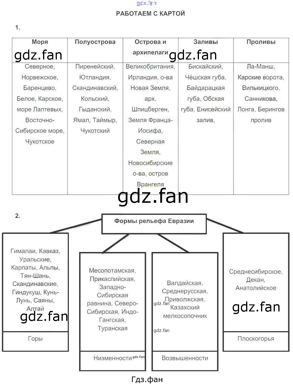 Проверка домашнего задания всегда занимает большое количество времени. На помощь приходит ГДЗ фан по Географии седьмого класса. Здесь собраны популярные ответы на 95 (Работаем с картой № 1, 2) География 7 класс тетрадь-тренажёр Котляр О.Г.