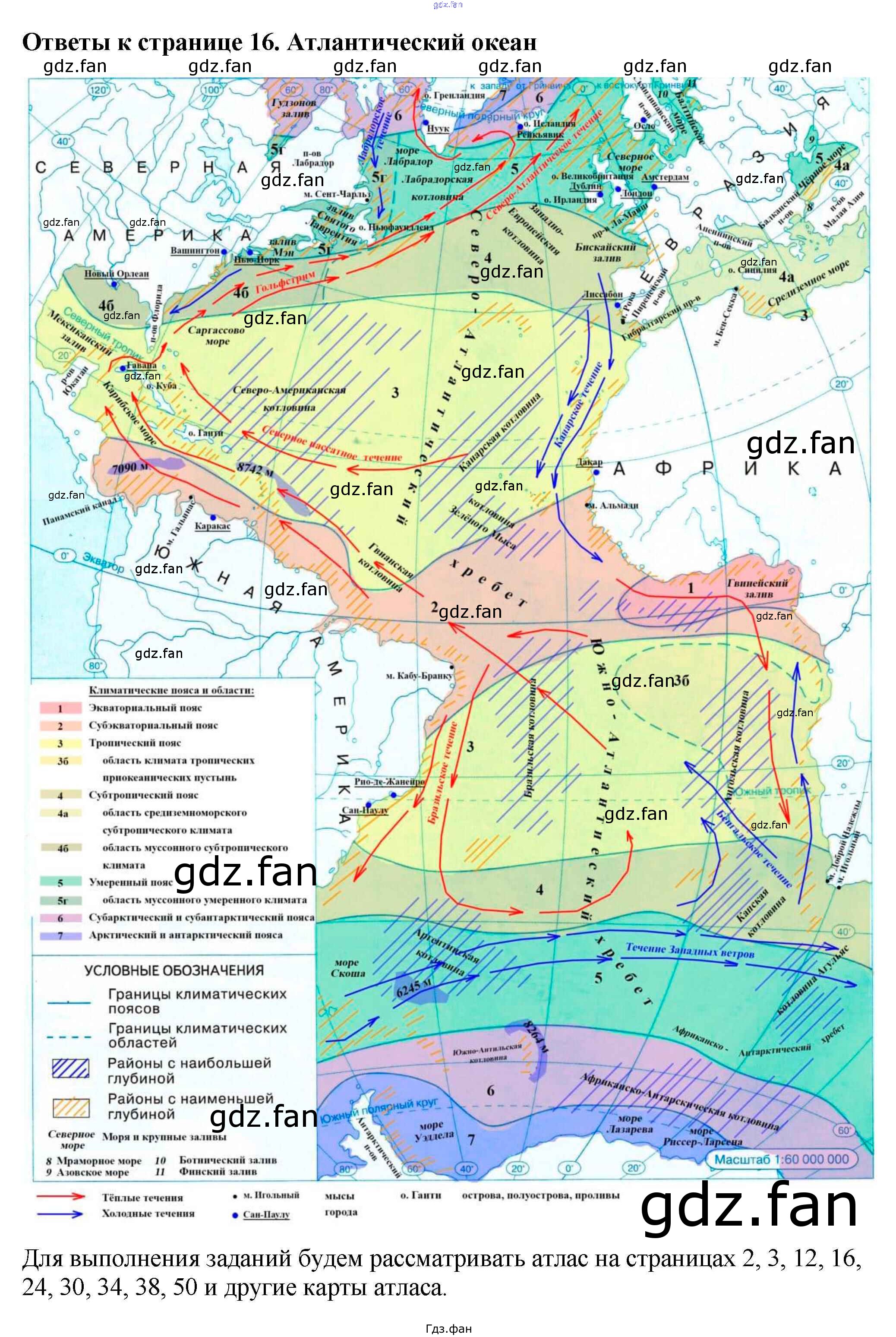 Проверка домашнего задания всегда занимает большое количество времени. На помощь приходит ГДЗ фан по Географии седьмого класса. Здесь собраны популярные ответы на 16 (Атлантический океан) География 7 класс контурные карты Курбский Н.А.