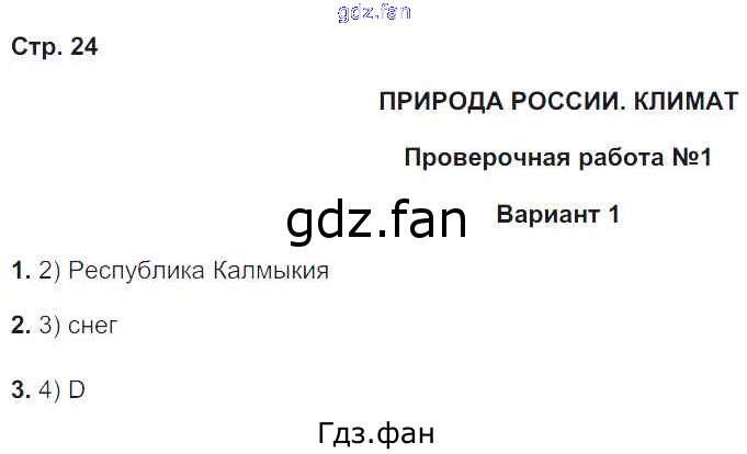Проверка домашнего задания всегда занимает большое количество времени. На помощь приходит ГДЗ фан по Географии восьмого класса. Здесь собраны популярные ответы на 24 (Климат. Проверочная работа № 1. Вариант 1 № 1, 2, 3) География 8 класс тетрадь-экзаменатор Барабанов В.В.