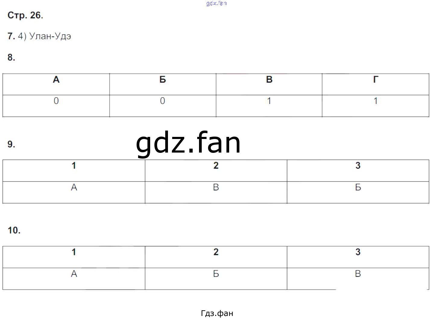 Проверка домашнего задания всегда занимает большое количество времени. На помощь приходит ГДЗ фан по Географии восьмого класса. Здесь собраны популярные ответы на 26 (№ 7, 8, 9, 10) География 8 класс тетрадь-экзаменатор Барабанов В.В.