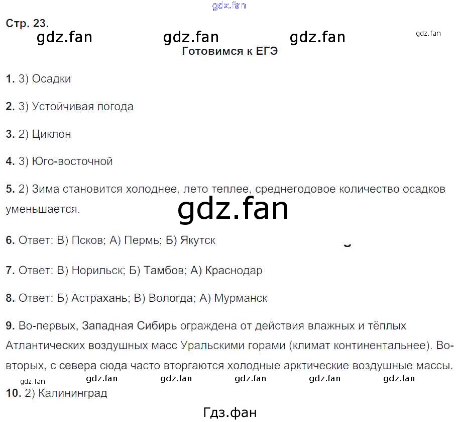 Проверка домашнего задания всегда занимает большое количество времени. На помощь приходит ГДЗ фан по Географии восьмого класса. Здесь собраны популярные ответы на 23 (№ Готовимся к ЕГЭ № 1-10) География 8 класс рабочая тетрадь Баринова И.И.