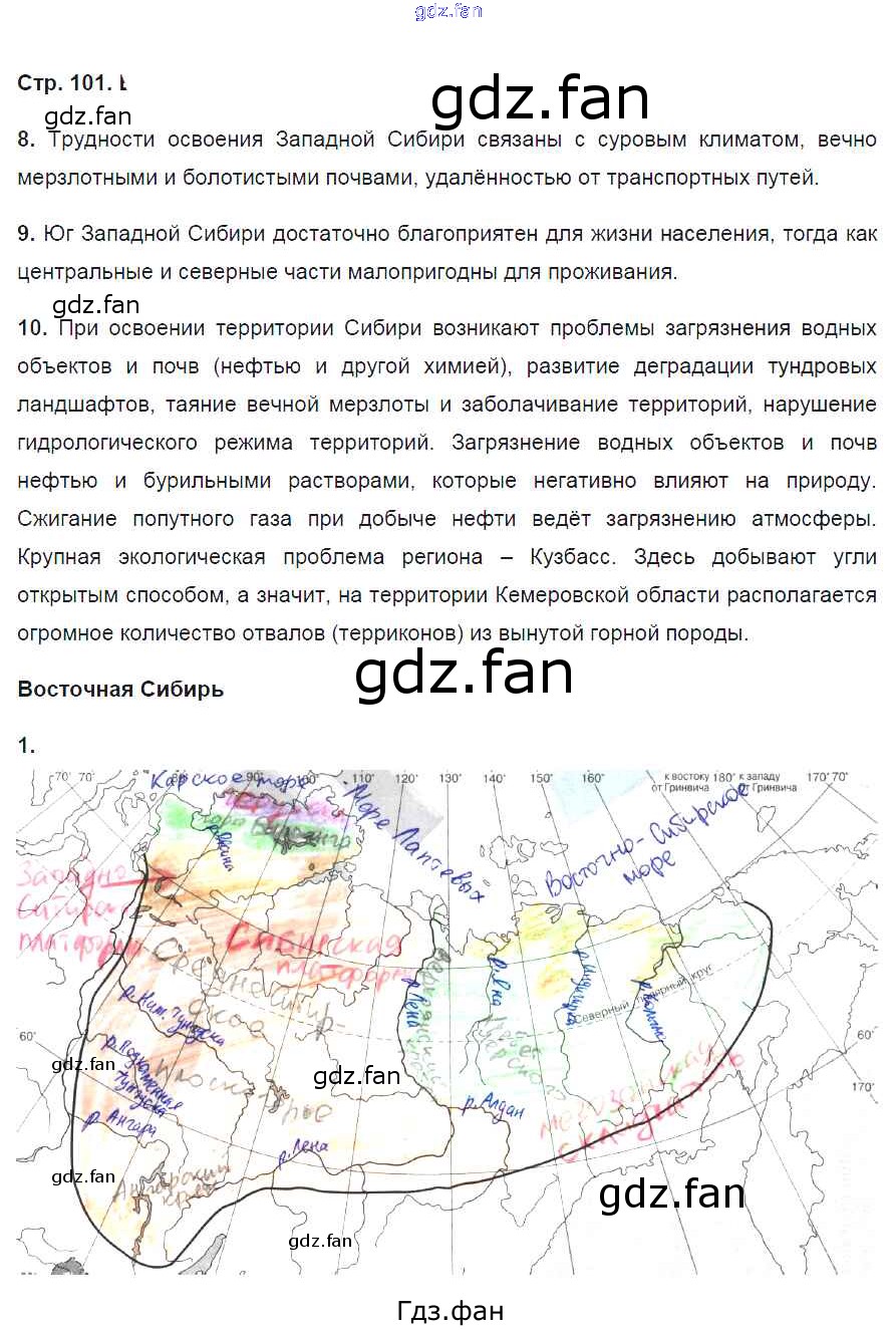 Проверка домашнего задания всегда занимает большое количество времени. На помощь приходит ГДЗ фан по Географии восьмого класса. Здесь собраны популярные ответы на 101 (№ 8, 9, 10. Восточная Сибирь № 1) География 8 класс рабочая тетрадь География России Баринова И.И.