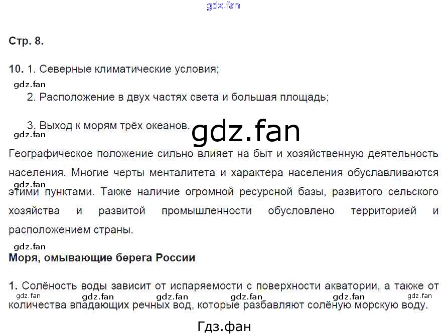 Проверка домашнего задания всегда занимает большое количество времени. На помощь приходит ГДЗ фан по Географии восьмого класса. Здесь собраны популярные ответы на 8 (№ 10. Моря, омывающие берега России № 1) География 8 класс рабочая тетрадь География России Баринова И.И.