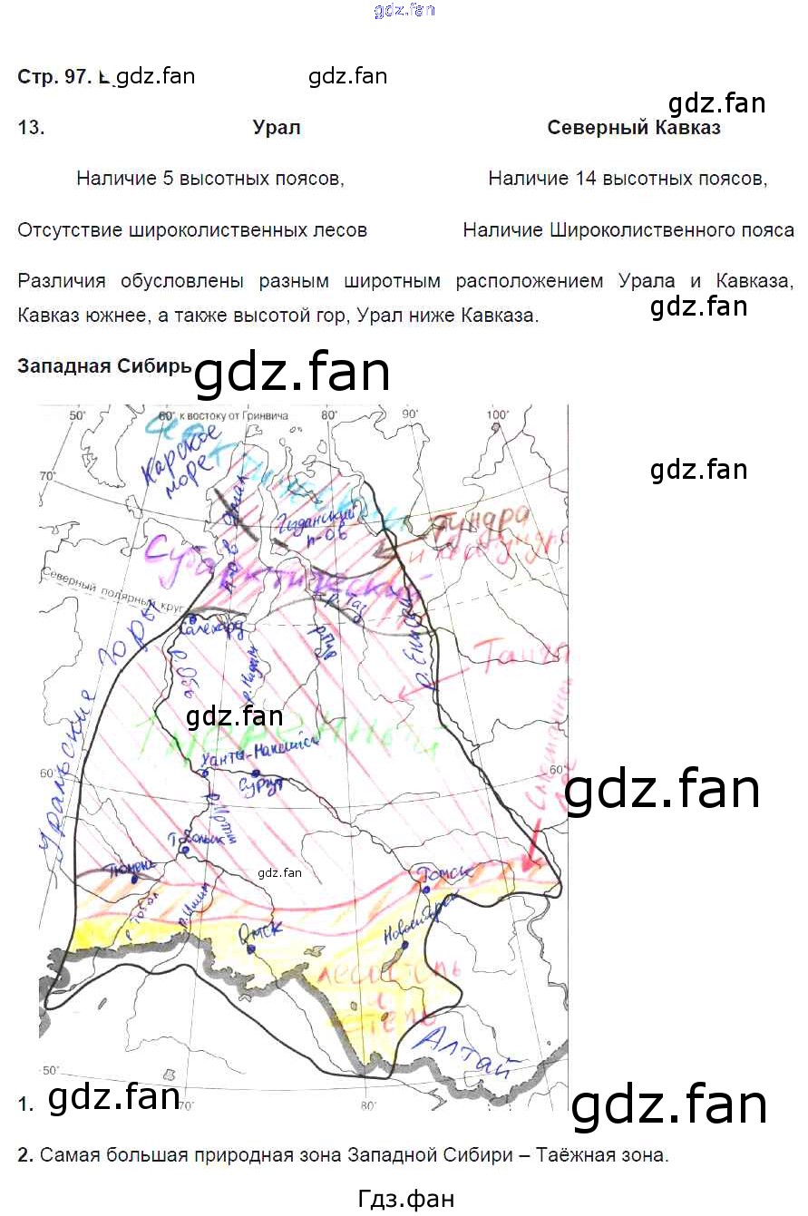 Проверка домашнего задания всегда занимает большое количество времени. На помощь приходит ГДЗ фан по Географии восьмого класса. Здесь собраны популярные ответы на 97 (№ 13. Западная Сибирь № 1, 2) География 8 класс рабочая тетрадь География России Баринова И.И.