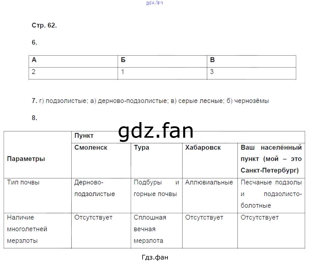 Проверка домашнего задания всегда занимает большое количество времени. На помощь приходит ГДЗ фан по Географии восьмого класса. Здесь собраны популярные ответы на 62 (задание 6, 7, 8) География 8 класс рабочая тетрадь Ким Э.В.