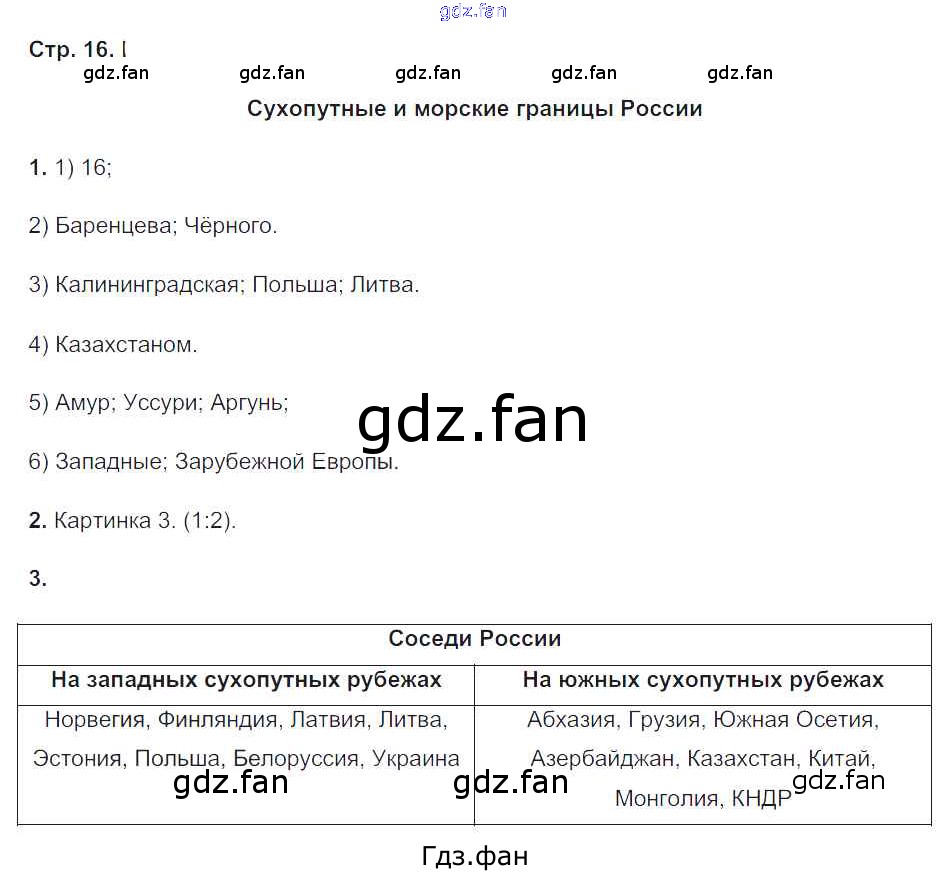 Проверка домашнего задания всегда занимает большое количество времени. На помощь приходит ГДЗ фан по Географии восьмого класса. Здесь собраны популярные ответы на 16 (Сухопутные и морские границы № 1, 2, 3) География 8 класс рабочая тетрадь Пятунин В.Б.