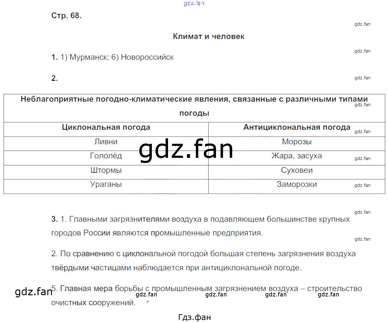 Проверка домашнего задания всегда занимает большое количество времени. На помощь приходит ГДЗ фан по Географии восьмого класса. Здесь собраны популярные ответы на 68 (Климат и человек № 1, 2, 3) География 8 класс рабочая тетрадь Пятунин В.Б.