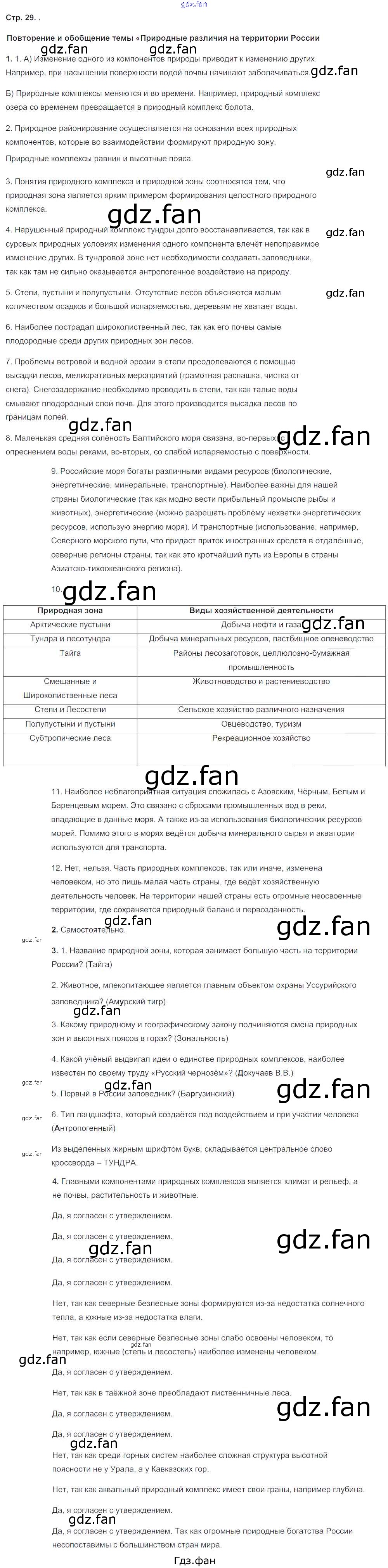 Проверка домашнего задания всегда занимает большое количество времени. На помощь приходит ГДЗ фан по Географии восьмого класса. Здесь собраны популярные ответы на 29 (Повторение и обобщение № 1, 2, 3, 4) География 8 класс рабочая тетрадь Пятунин В.Б.