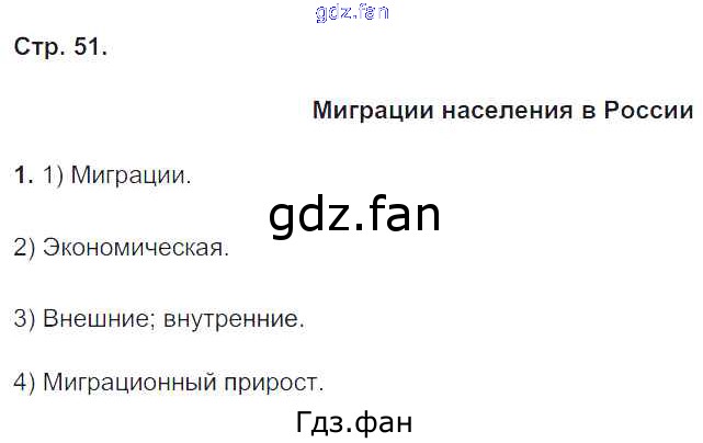 Проверка домашнего задания всегда занимает большое количество времени. На помощь приходит ГДЗ фан по Географии восьмого класса. Здесь собраны популярные ответы на 51 (Миграции населения в России № 1) География 8 класс рабочая тетрадь Пятунин В.Б.