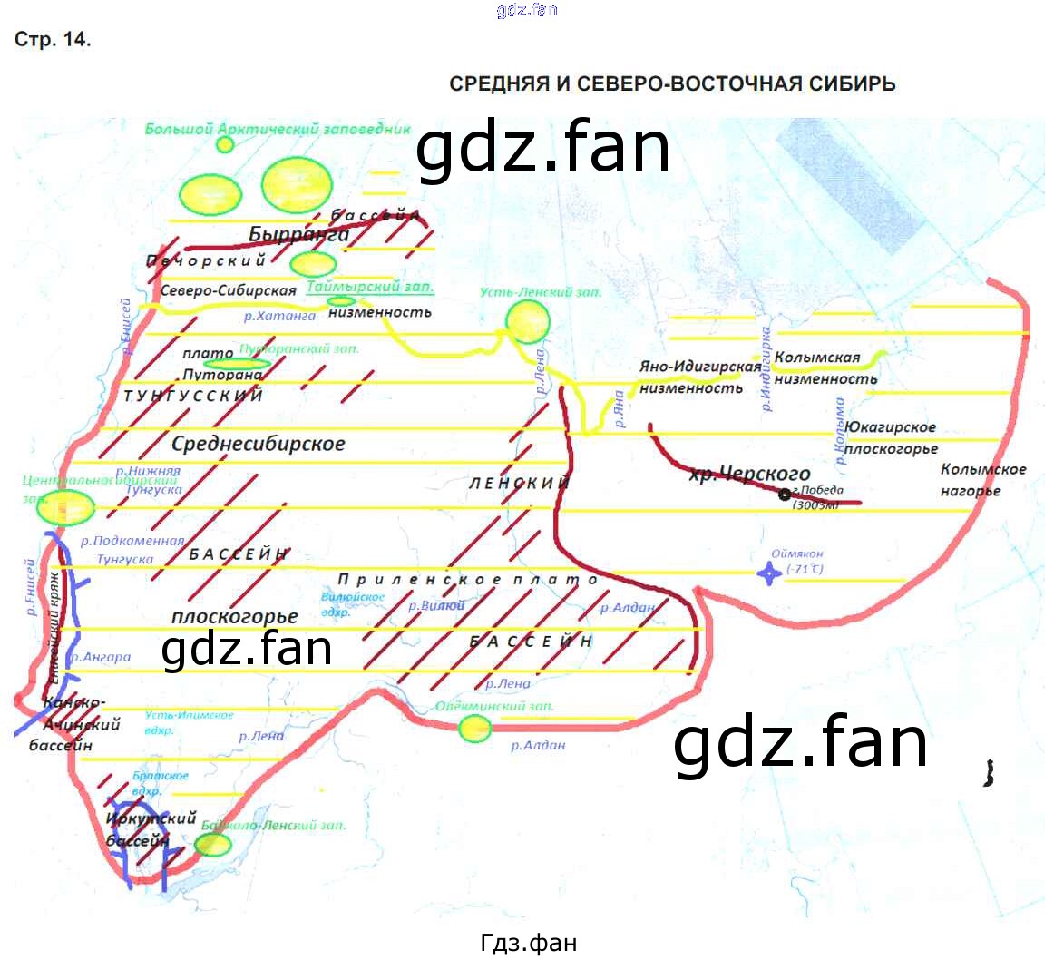 Проверка домашнего задания всегда занимает большое количество времени. На помощь приходит ГДЗ фан по Географии восьмого класса. Здесь собраны популярные ответы на 14-15 (Средняя и Северо-восточная Сибирь) География 8 класс контурные карты с заданиями Раковская Э.М.