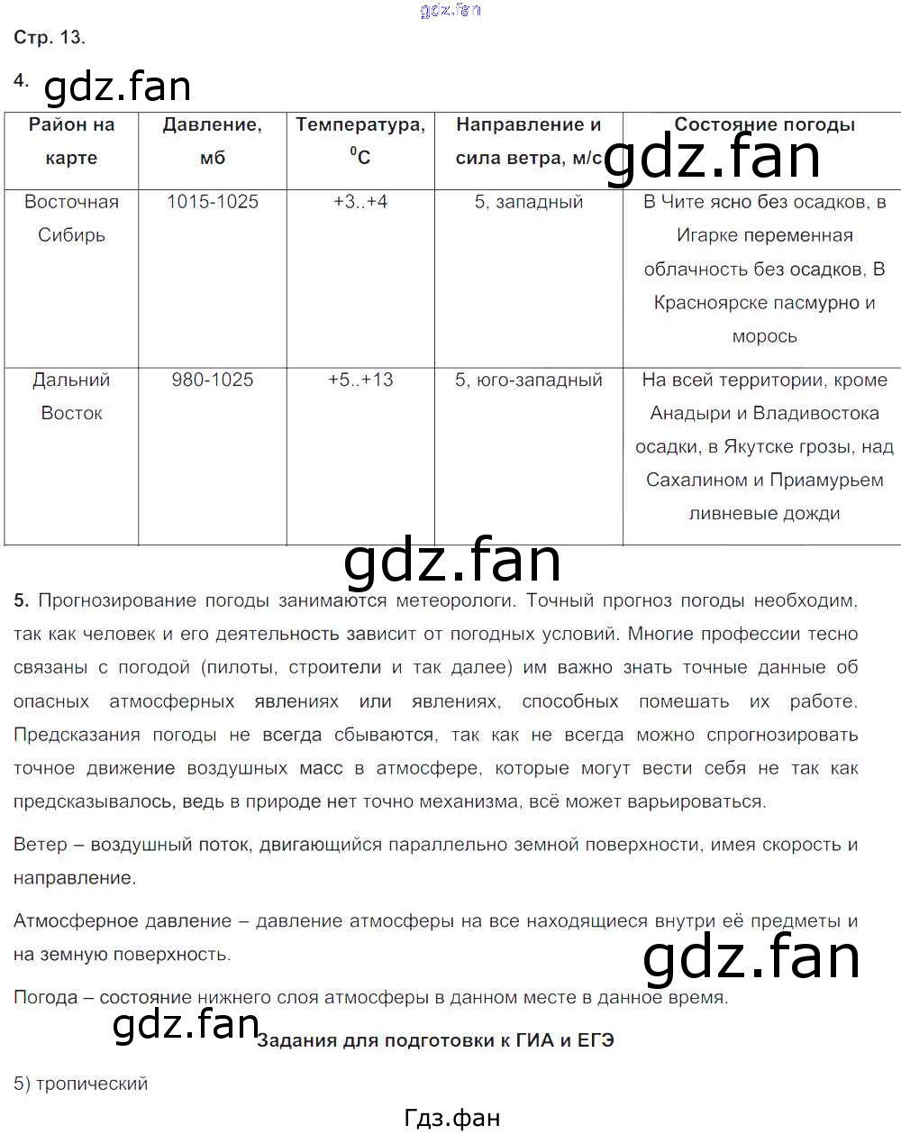 Проверка домашнего задания всегда занимает большое количество времени. На помощь приходит ГДЗ фан по Географии восьмого класса. Здесь собраны популярные ответы на 13 (№ 4, 5, Задания для подготовки к ГИА и ЕГЭ) География 8 класс рабочая тетрадь с контурными картами Сиротин В.И.