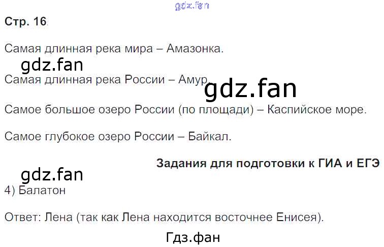 Проверка домашнего задания всегда занимает большое количество времени. На помощь приходит ГДЗ фан по Географии восьмого класса. Здесь собраны популярные ответы на 16 (Задания для подготовки к ГИА и ЕГЭ) География 8 класс рабочая тетрадь с контурными картами Сиротин В.И.