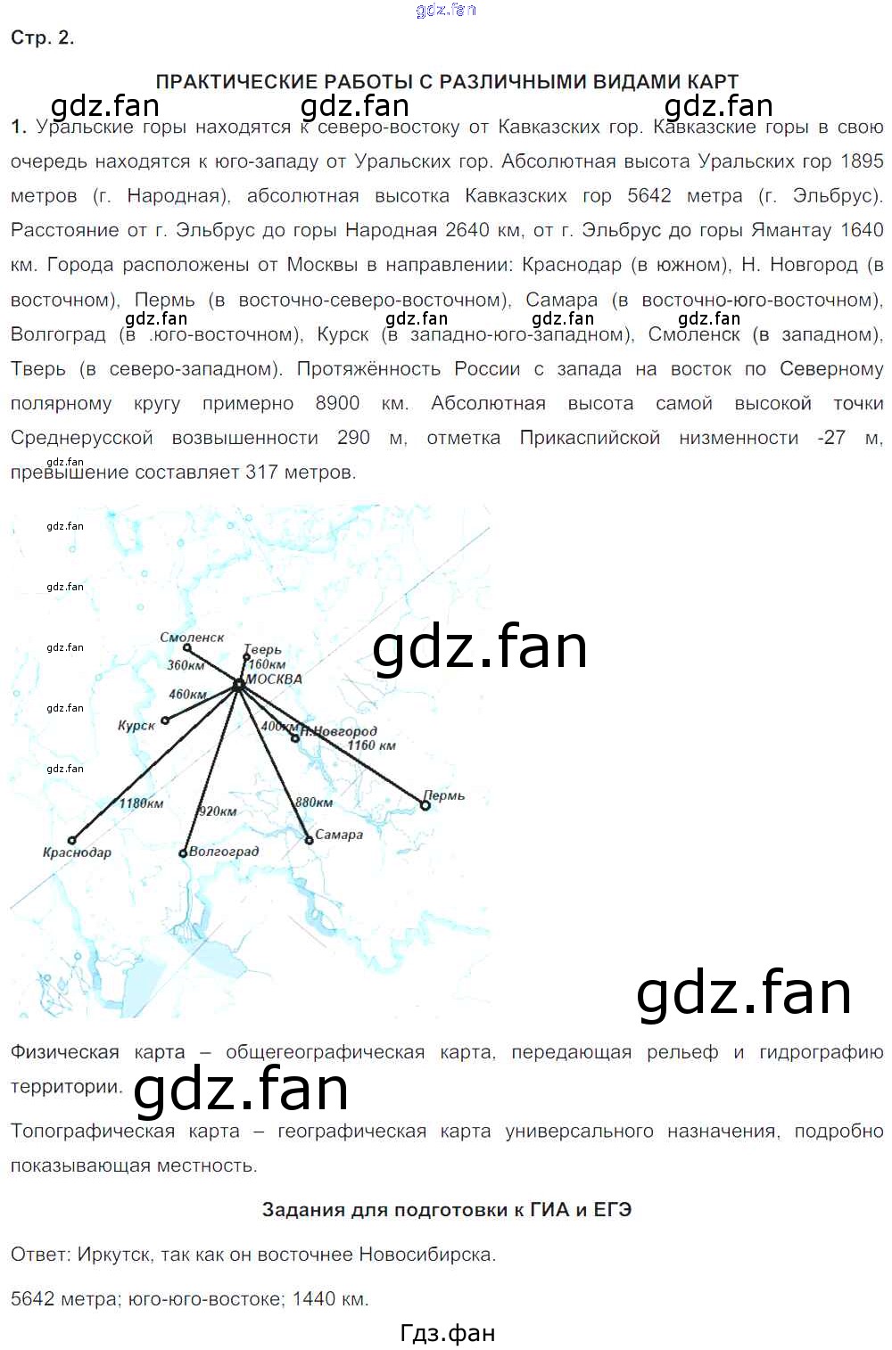 Проверка домашнего задания всегда занимает большое количество времени. На помощь приходит ГДЗ фан по Географии восьмого класса. Здесь собраны популярные ответы на 2 (Практические работы № 1, Задания для подготовки к ГИА и ЕГЭ) География 8 класс рабочая тетрадь с контурными картами Сиротин В.И.