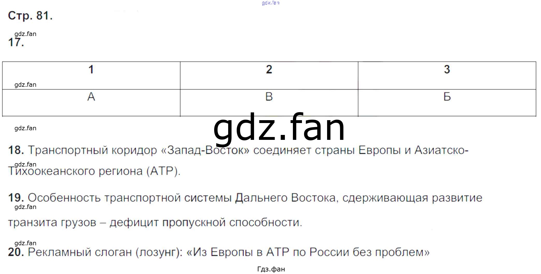 Проверка домашнего задания всегда занимает большое количество времени. На помощь приходит ГДЗ фан по Географии девятого класса. Здесь собраны популярные ответы на вариант-1 (стр. 78-82) География России 9 класс тетрадь-экзаменатор Барабанов В.В.