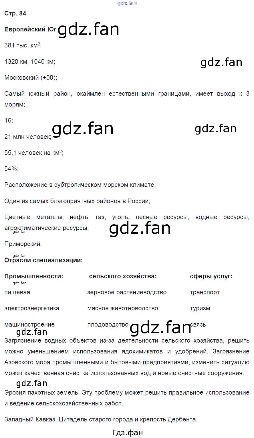 Проверка домашнего задания всегда занимает большое количество времени. На помощь приходит ГДЗ фан по Географии девятого класса. Здесь собраны популярные ответы на 84 (Европейский Юг) География России 9 класс рабочая тетрадь Баринова И.И. (к уч. Дронова)