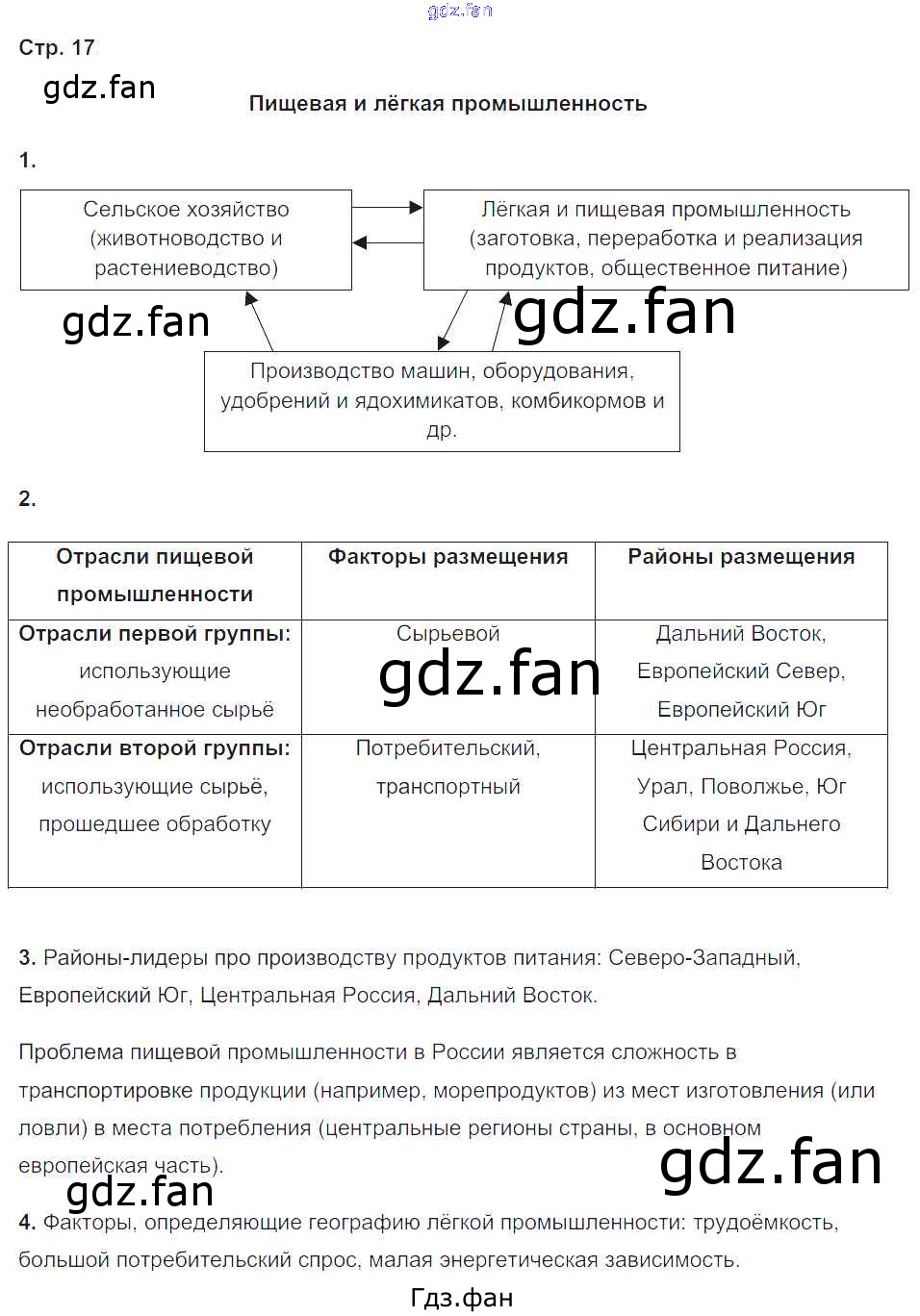 Проверка домашнего задания всегда занимает большое количество времени. На помощь приходит ГДЗ фан по Географии девятого класса. Здесь собраны популярные ответы на 17 (Пищевая и лёгкая промышленность № 1, 2, 3, 4) География 9 класс Рабочая тетрадь с комплектом контурных карт Баринова И.И.