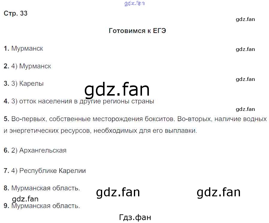 Проверка домашнего задания всегда занимает большое количество времени. На помощь приходит ГДЗ фан по Географии девятого класса. Здесь собраны популярные ответы на 33 (Готовимся к ЕГЭ № 1, 2, 3, 4, 5, 6, 7, 8, 9) География 9 класс Рабочая тетрадь с комплектом контурных карт Баринова И.И.