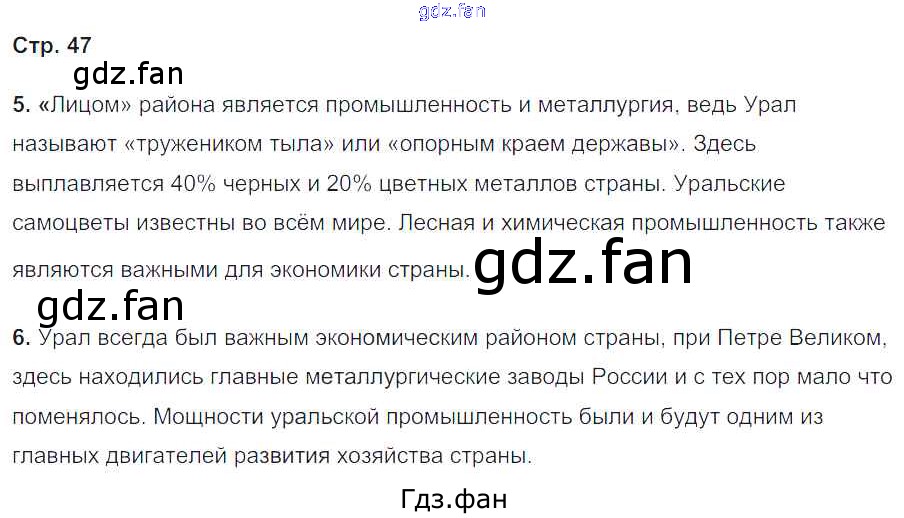 Проверка домашнего задания всегда занимает большое количество времени. На помощь приходит ГДЗ фан по Географии девятого класса. Здесь собраны популярные ответы на 47 (№ 5, 6) География 9 класс Рабочая тетрадь с комплектом контурных карт Баринова И.И.