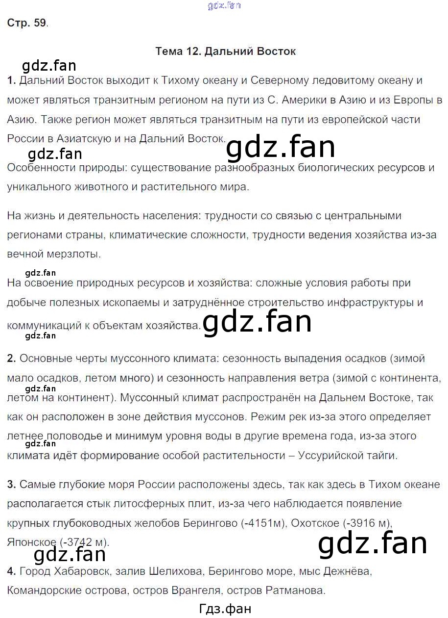 Проверка домашнего задания всегда занимает большое количество времени. На помощь приходит ГДЗ фан по Географии девятого класса. Здесь собраны популярные ответы на 59 (Тема 12. Дальний Восток № 1, 2, 3, 4) География 9 класс Рабочая тетрадь с комплектом контурных карт Баринова И.И.
