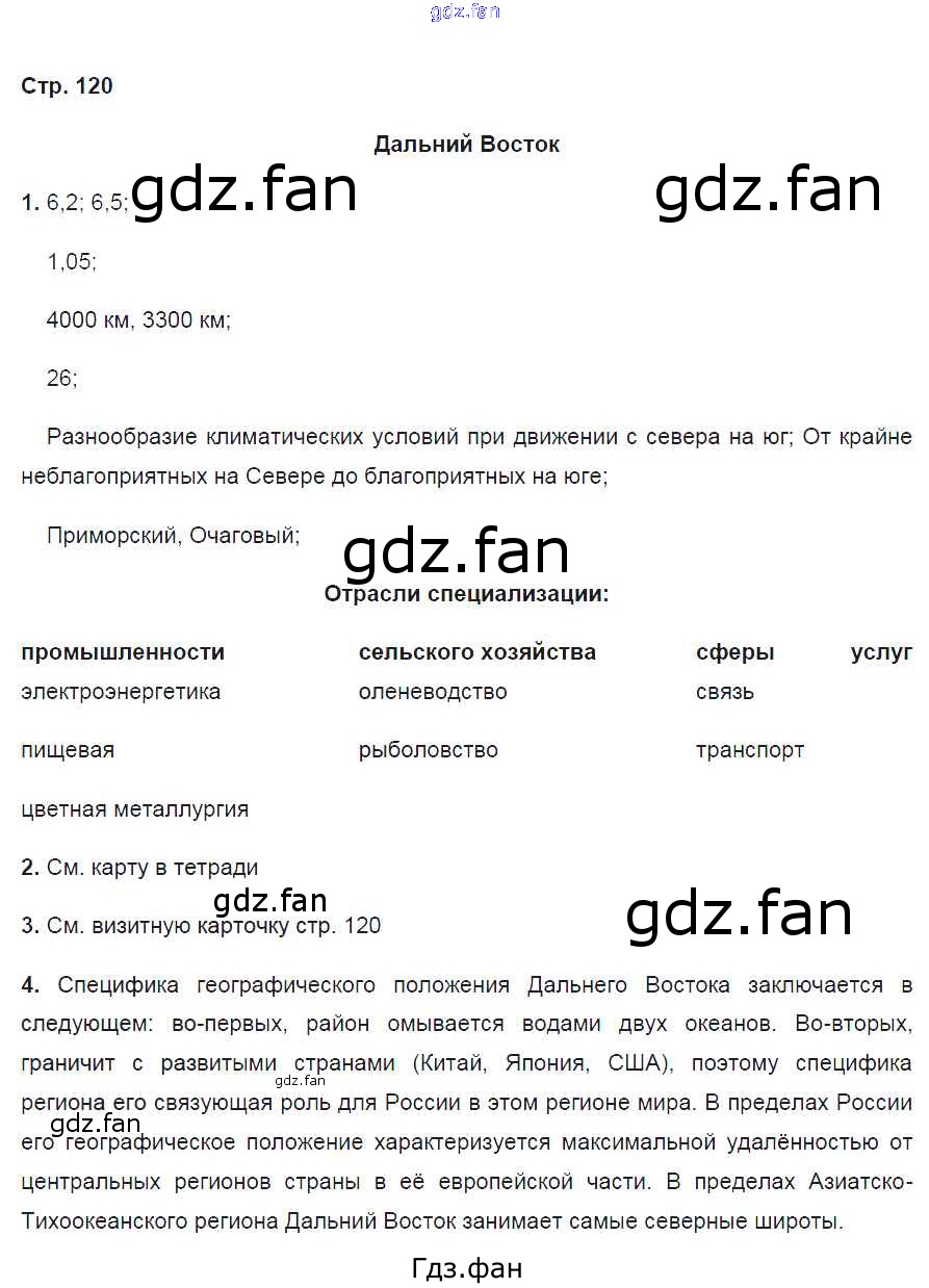 Проверка домашнего задания всегда занимает большое количество времени. На помощь приходит ГДЗ фан по Географии девятого класса. Здесь собраны популярные ответы на 120 (Дальний Восток № 1, 2, 3, 4) География России. Население и хозяйство 9 класс рабочая тетрадь Дронов В.П. (к уч.Дронова)