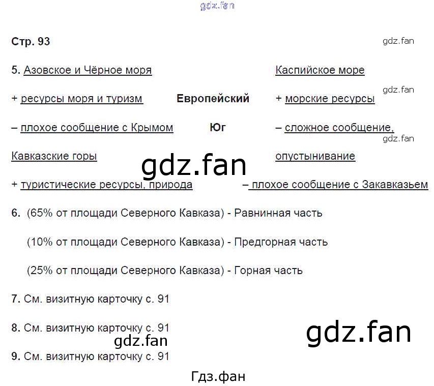 Проверка домашнего задания всегда занимает большое количество времени. На помощь приходит ГДЗ фан по Географии девятого класса. Здесь собраны популярные ответы на 93 (№ 5, 6, 7, 8, 9) География России. Население и хозяйство 9 класс рабочая тетрадь Дронов В.П. (к уч.Дронова)