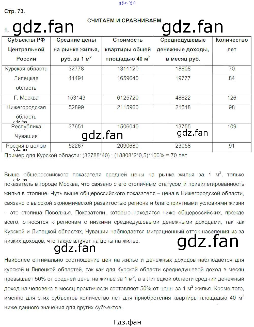 Проверка домашнего задания всегда занимает большое количество времени. На помощь приходит ГДЗ фан по Географии девятого класса. Здесь собраны популярные ответы на 73 (Считаем и сравниваем № 1) География России 9 класс тетрадь-тренажер Ходова Е.С.