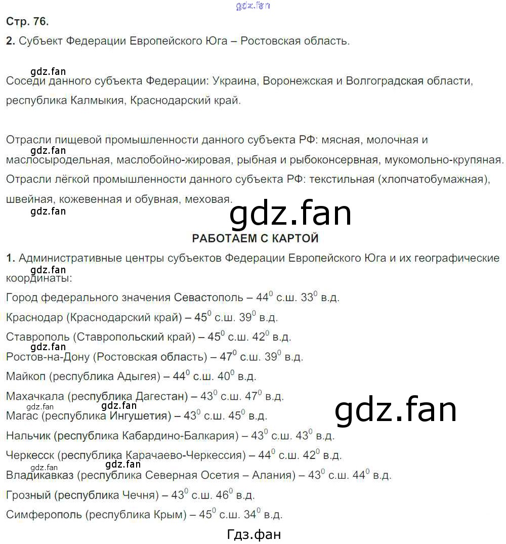Проверка домашнего задания всегда занимает большое количество времени. На помощь приходит ГДЗ фан по Географии девятого класса. Здесь собраны популярные ответы на 76 (№ 2. Работаем с картой № 1) География России 9 класс тетрадь-тренажер Ходова Е.С.