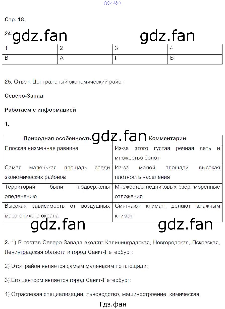 Проверка домашнего задания всегда занимает большое количество времени. На помощь приходит ГДЗ фан по Географии девятого класса. Здесь собраны популярные ответы на 18 (№ 24, 25. Северо-Запад № 1, 2) География 9 класс тетрадь-тренажер Николина В.В.