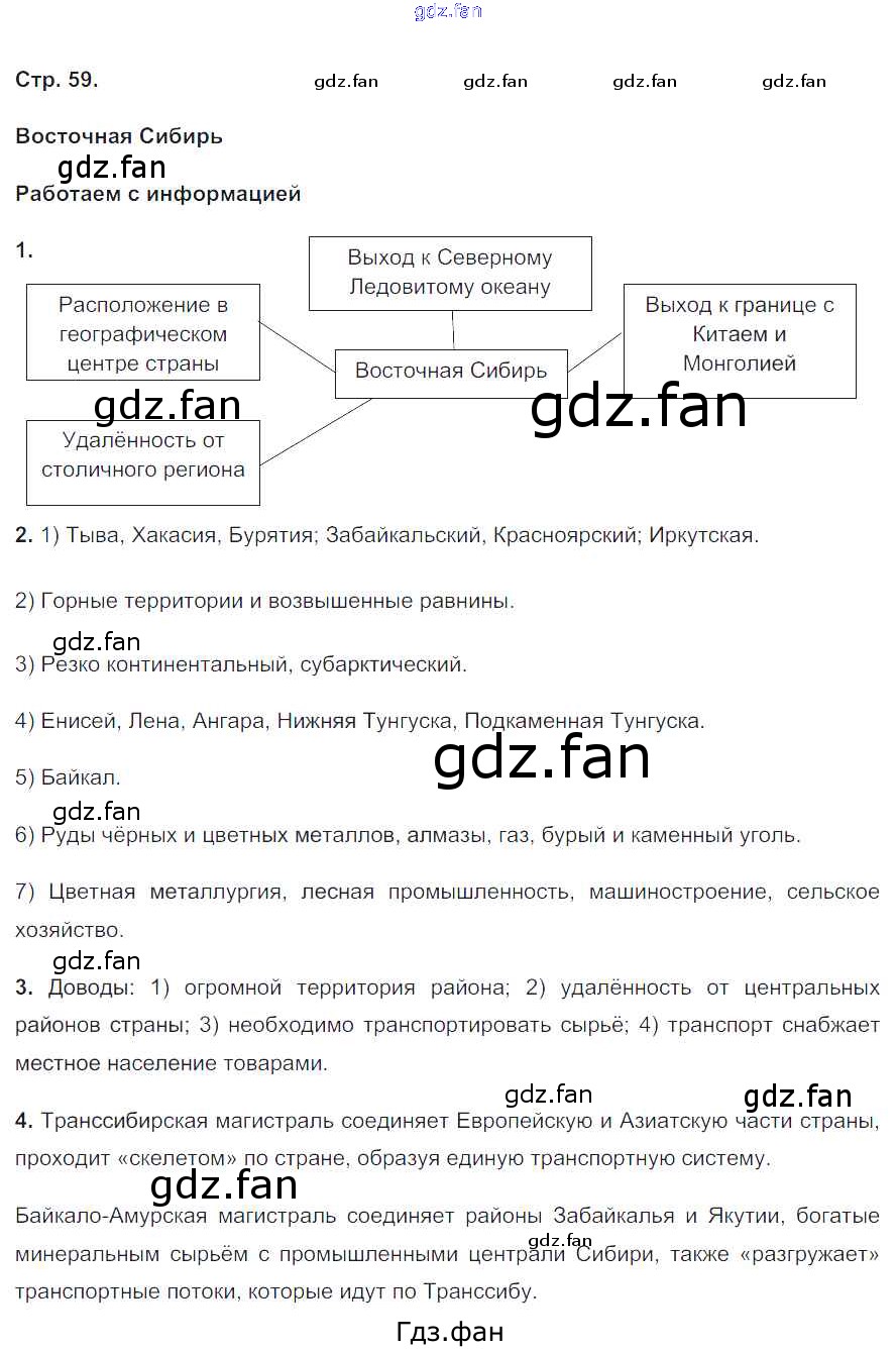 Проверка домашнего задания всегда занимает большое количество времени. На помощь приходит ГДЗ фан по Географии девятого класса. Здесь собраны популярные ответы на 59 (Восточная Сибирь № 1, 2, 3, 4) География 9 класс тетрадь-тренажер Николина В.В.