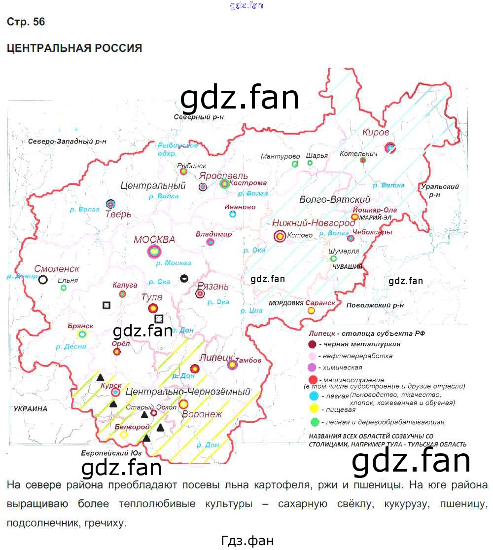 Проверка домашнего задания всегда занимает большое количество времени. На помощь приходит ГДЗ фан по Географии девятого класса. Здесь собраны популярные ответы на 56 (Центральная Россия) География России. Население и хозяйство 9 класс Рабочая тетрадь с контурными картами Сиротин В.И.