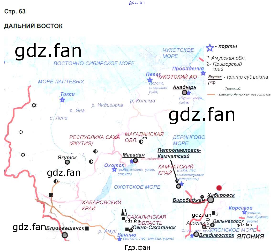 Проверка домашнего задания всегда занимает большое количество времени. На помощь приходит ГДЗ фан по Географии девятого класса. Здесь собраны популярные ответы на 63 (Дальний Восток) География России. Население и хозяйство 9 класс Рабочая тетрадь с контурными картами Сиротин В.И.