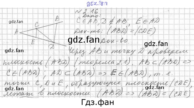 Проверка домашнего задания всегда занимает большое количество времени. На помощь приходит ГДЗ фан по Геометрии десятого класса. Здесь собраны популярные ответы на 2.16 (стр. 16) Геометрия 10 класс Мерзляк А.Г.