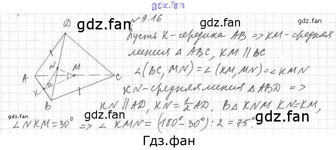Проверка домашнего задания всегда занимает большое количество времени. На помощь приходит ГДЗ фан по Геометрии десятого класса. Здесь собраны популярные ответы на 9.16 (стр. 110) Геометрия 10 класс Мерзляк А.Г.