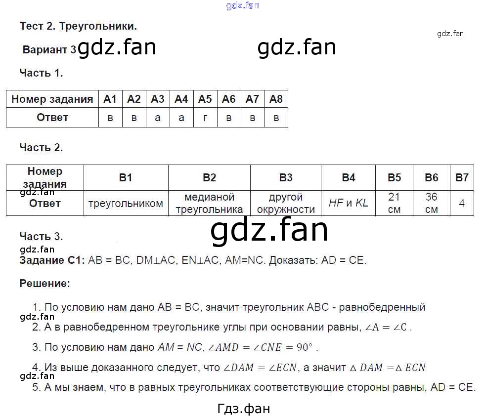 Проверка домашнего задания всегда занимает большое количество времени. На помощь приходит ГДЗ фан по Геометрии седьмого класса. Здесь собраны популярные ответы на 3 (стр. 36-39) Геометрия 7 класс Тесты Фарков А.В. (к новому уч. Атанасяна Л.С.)