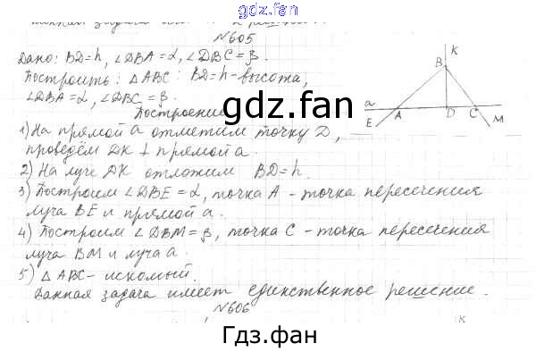 Проверка домашнего задания всегда занимает большое количество времени. На помощь приходит ГДЗ фан по Геометрии седьмого класса. Здесь собраны популярные ответы на 605 (стр. 151) Геометрия 7 класс Мерзляк А.Г.