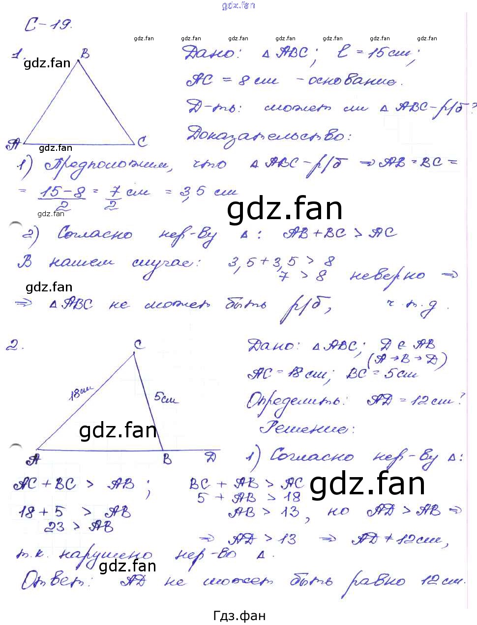Проверка домашнего задания всегда занимает большое количество времени. На помощь приходит ГДЗ фан по Геометрии седьмого класса. Здесь собраны популярные ответы на С-19 (стр. 21) Геометрия 7 класс Дидактические материалы Зив Б.Г.