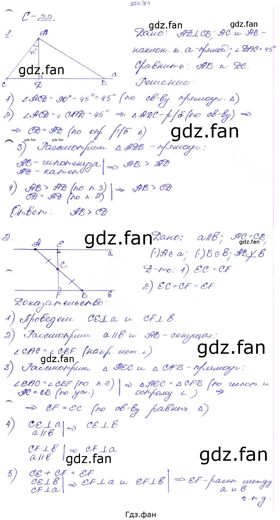 Проверка домашнего задания всегда занимает большое количество времени. На помощь приходит ГДЗ фан по Геометрии седьмого класса. Здесь собраны популярные ответы на С-22 (стр. 29) Геометрия 7 класс Дидактические материалы Зив Б.Г.
