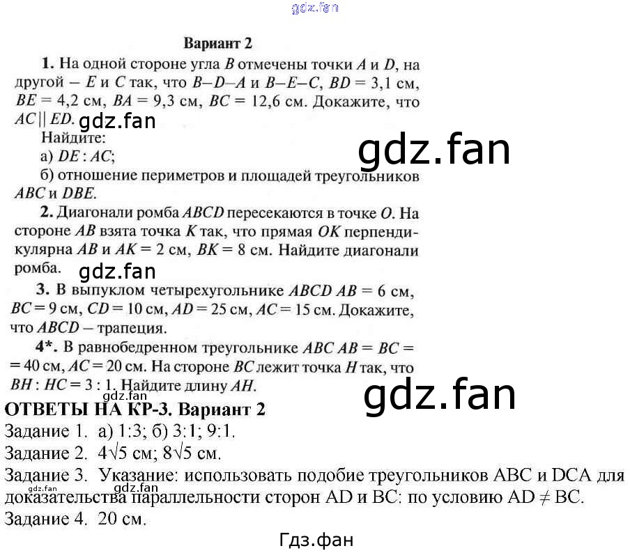 Проверка домашнего задания всегда занимает большое количество времени. На помощь приходит ГДЗ фан по Геометрии восьмого класса. Здесь собраны популярные ответы на КР-3 (стр. 80-81) Геометрия 8 класс контрольно-измерительные материалы Гаврилова Н.Ф.