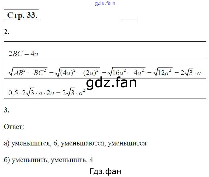 Проверка домашнего задания всегда занимает большое количество времени. На помощь приходит ГДЗ фан по Геометрии восьмого класса. Здесь собраны популярные ответы на 33 (№ 2, 3) Геометрия 8 класс Универсальные учебные действия (рабочая тетрадь) Глазков Ю.А. (к уч. Атанасяна)