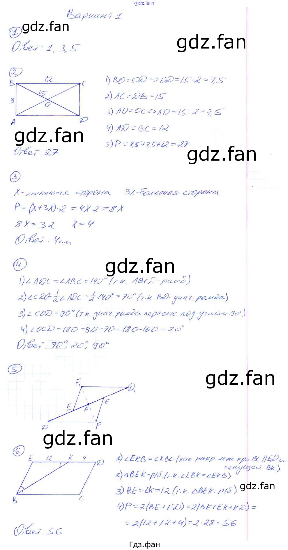 Проверка домашнего задания всегда занимает большое количество времени. На помощь приходит ГДЗ фан по Геометрии восьмого класса. Здесь собраны популярные ответы на Вариант №1 (стр. 11-12) Геометрия 8 класс контрольные работы Мельникова Н.Б. (к уч. Атанасяна)